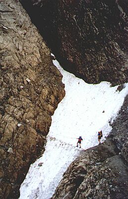 gehen. Wir durchqueren den Minigletscher bis zum Einstieg in die Südostflanke.